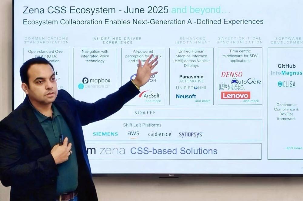 Arm汽車事業部產品和解決方案副總裁Suraj Gajendra介紹了Arm Zena計算子系統(Compute Subsystems, CSS)。