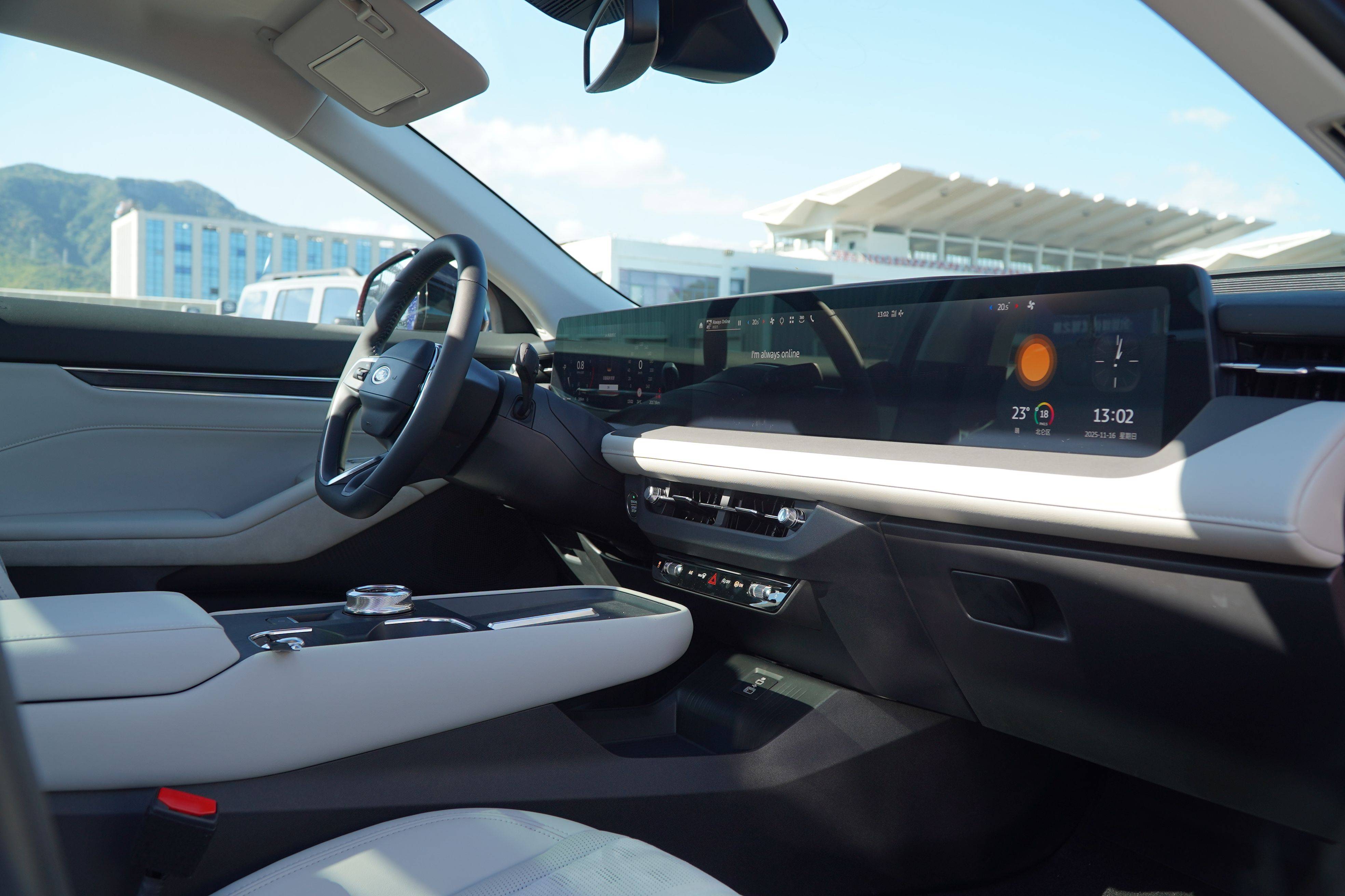 內飾也繼續采用長1.1米的27英寸4K三聯屏,不過將升級8155芯片,搭載新一代SYNC+智行互聯系統,增加AI語音大模型、高德地圖、Apple Carplay手機互聯、540°全景影像等功能。