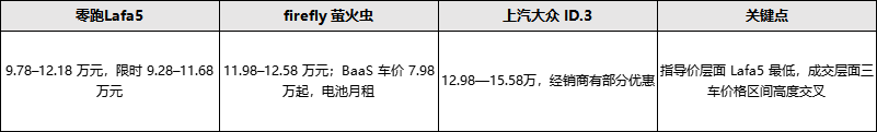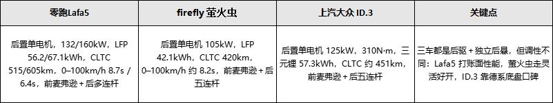 零跑Lafa5對比螢火蟲和ID.3:10萬級的純電兩廂,選誰才不會錯?