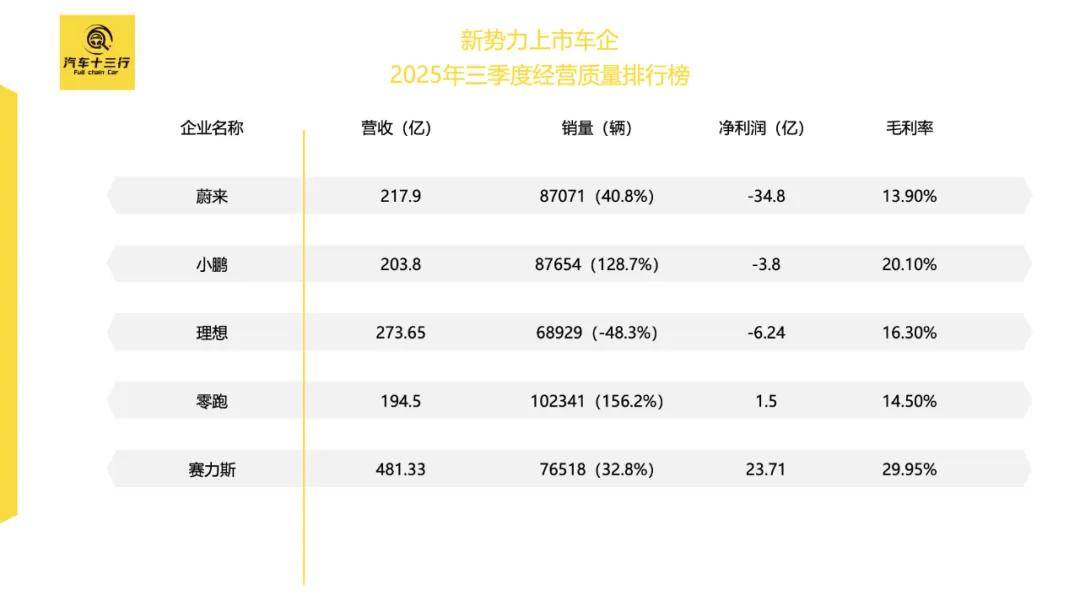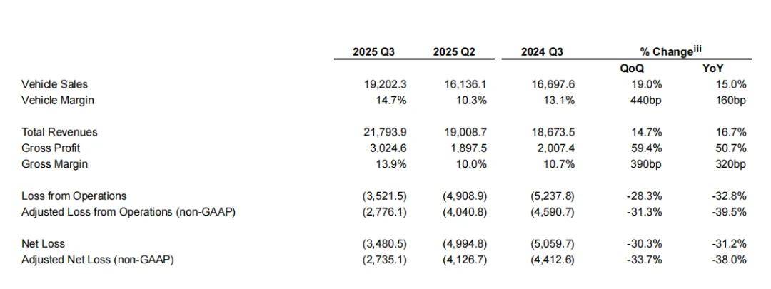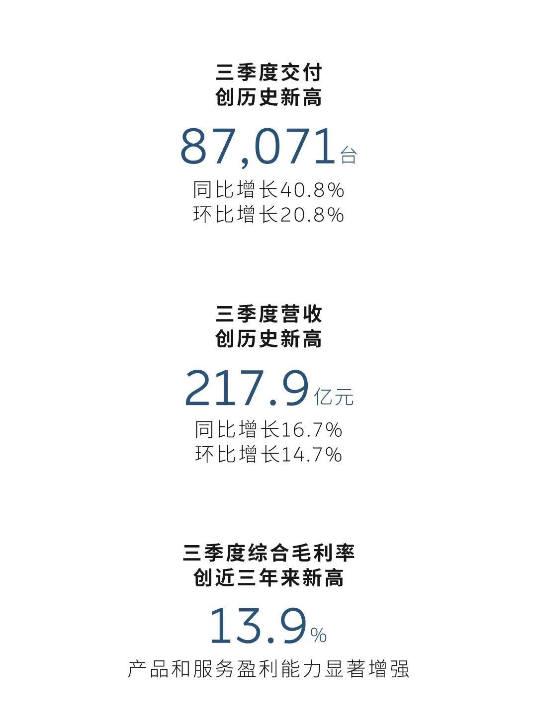 11月25日,蔚來發布2025年第三季度財報,第三季度新車交付87,071輛,同比大漲40.8%,營收217.9億元,綜合毛利率13.9%、整車毛利率14.7%,給足了外界四季度盈利預期。