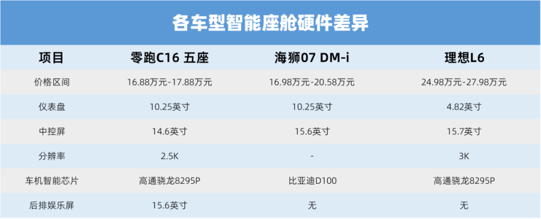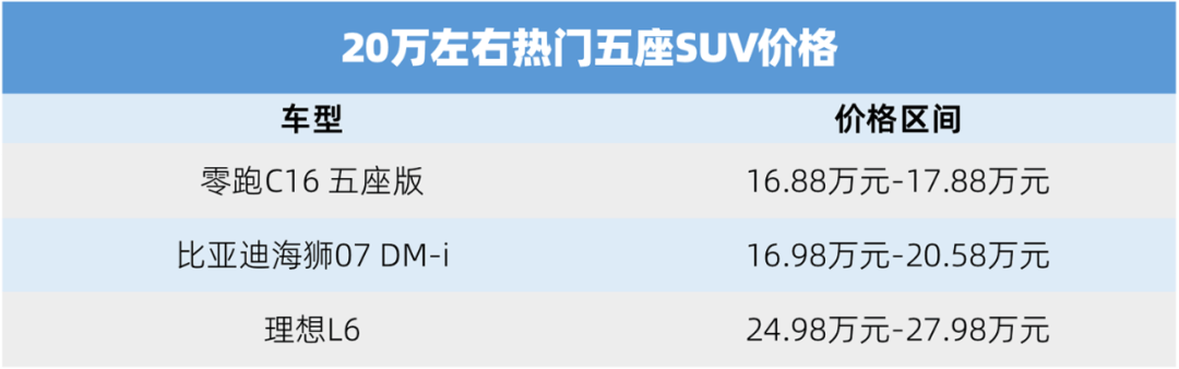 作為新款車型,零跑C16五座版標配了許多配置,那競爭力到底如何?俗話說得好,是馬是騾拉出來溜溜就知道。它跟市場上幾款熱門五座中大型SUV相比,如比亞迪海獅07 DM-i、理想L6等等,差異會不會很大?