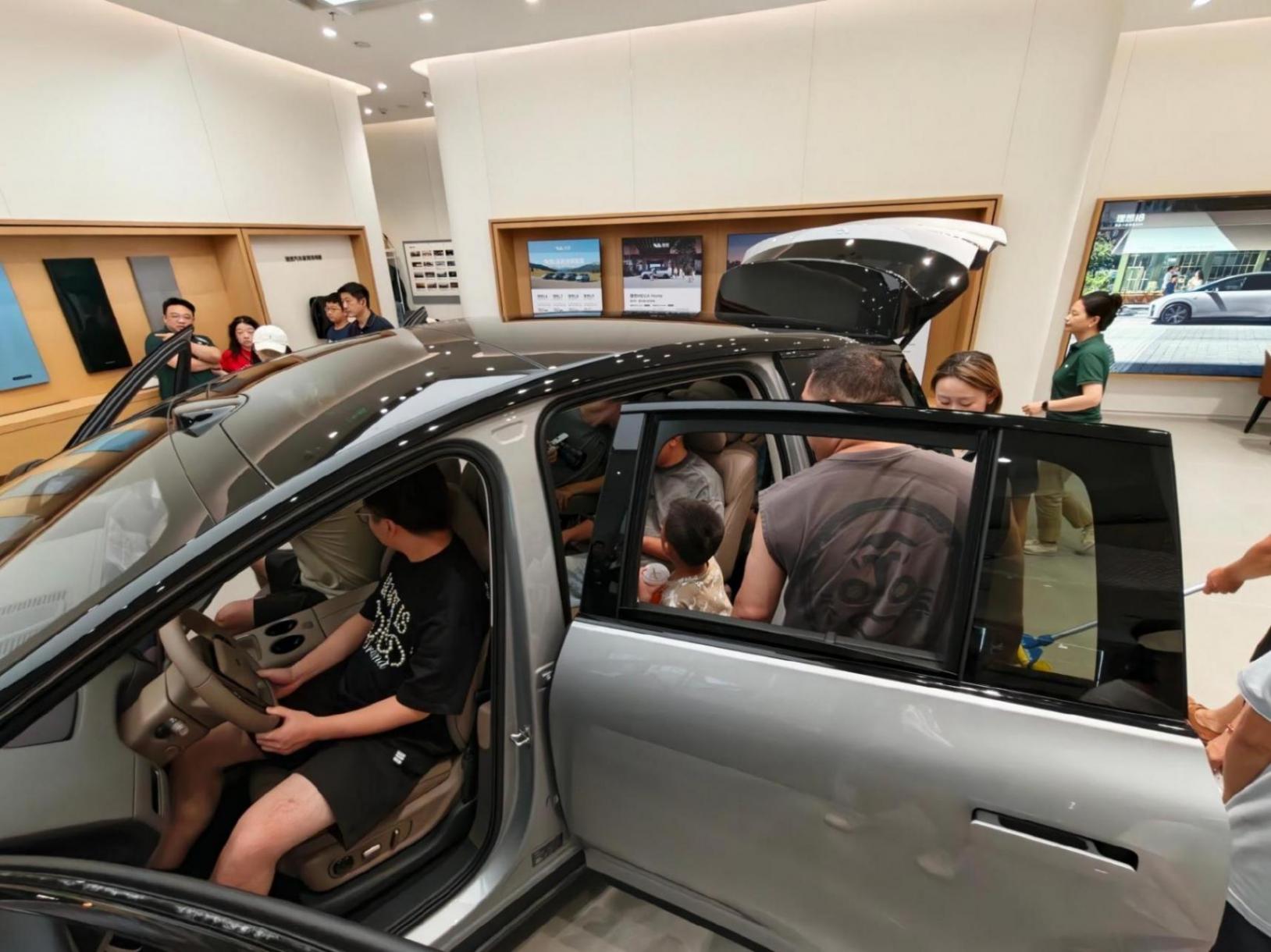 理想i8開啟預售的首個周六,人氣還是很旺的,進店看車需要短暫排隊。雖然也是家庭六座車,但年輕用戶比例明顯比友商那款更高。