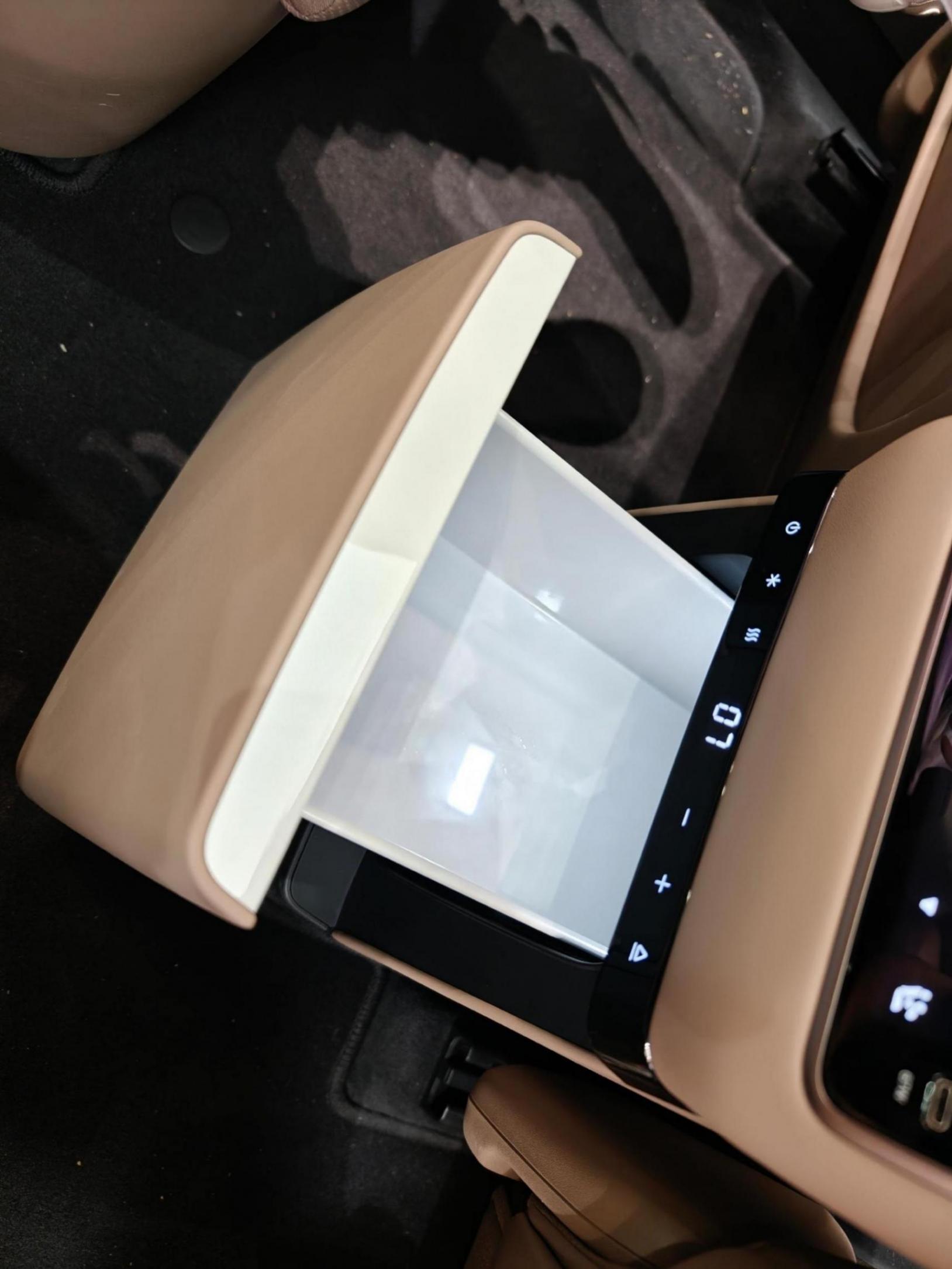 4、內飾乍一看還是理想老一套,但細節變化非常大,個人理解是理想認為L系列的內飾在人機工程上已經沒有迭代空間,只能優化細節——一是車門板和前IP臺層次感更豐富了,至少都有三個層次,對材質、顏色、漫反射氛圍燈也進行了豐富;二是前后車門扶手采用高鐵風格的曲面設計,內外統一感更好;三是出風口變為電子出風,也減少了套環飾件,更簡潔;三是相比MEGA降低了前IP臺高度,遠端增加氛圍燈,更像特斯拉的做法。