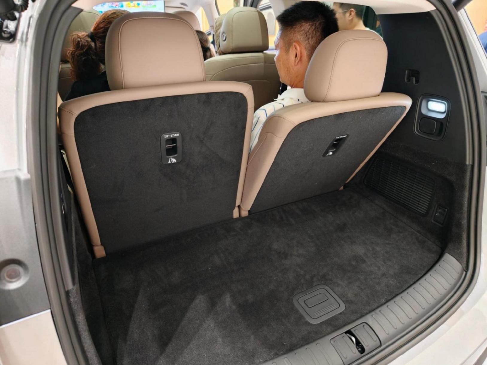8、后備箱進深符合需求,但是第三排靠背調整后距離尾門邊緣大概20厘米,底部隱藏空間比較淺,所以六人出行時行李堆放需要合理安排。