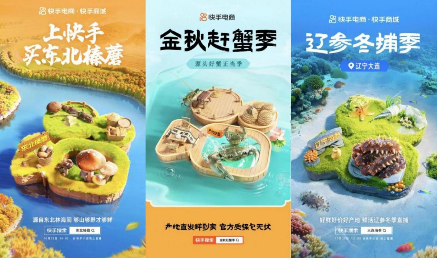 在洞察到眾多地方優(yōu)質(zhì)土特產(chǎn)面臨難以走出當(dāng)?shù)厥袌龅睦Ь澈螅焓蛛娚烫貏e推出“快手家鄉(xiāng)貨”項目。2024年下半年,快手電商聯(lián)合黑龍江、遼寧、江西等地政府、商會,邀請平臺頭部達(dá)人及區(qū)域特色達(dá)人,通過“線上種草-線下體驗-專場帶貨”整合營銷,深度溯源盤錦河蟹、東北榛蘑、佟二堡貂、大連海參、景德鎮(zhèn)瓷器,并為產(chǎn)地商家提供專項補(bǔ)貼、流量扶持,將源頭好物從田間地頭帶進(jìn)消費(fèi)者心頭。