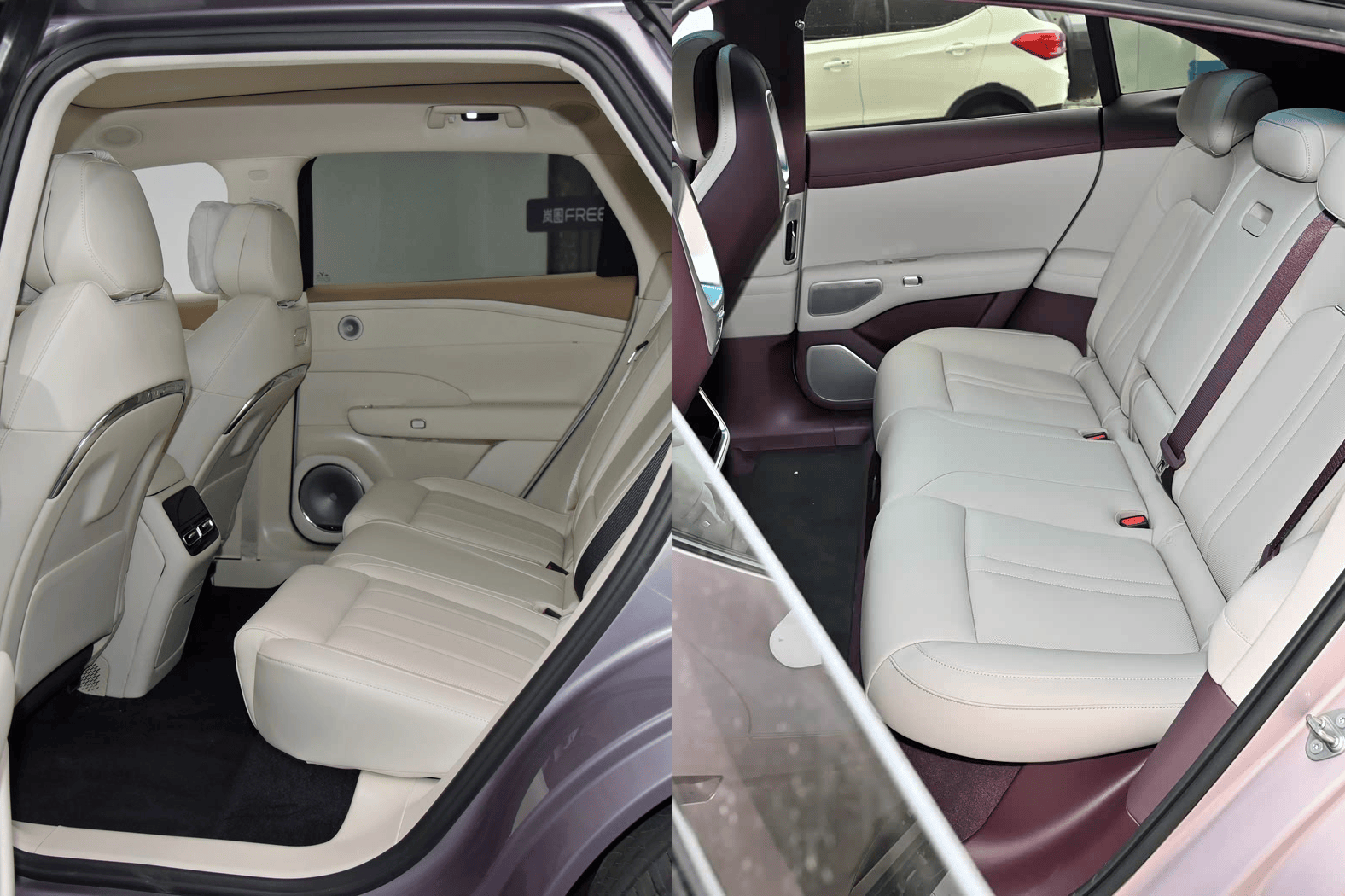 基于兩款車不同的設計風格,它們在車內空間方面差異也巨大。兩款車的尺寸軸距雖然差異不大,但小米YU7采用超長車頭設計,無疑壓縮了車內的乘坐空間。而溜背式的車尾造型,也壓縮了后備廂上部空間,其儲物能力受限。