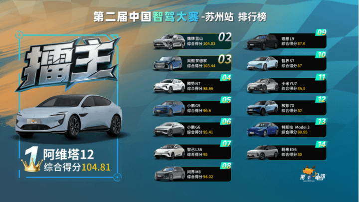 根據裁判組消息,獲得第二屆智駕大賽蘇州站城市NOA賽前三名的是——冠軍,阿維塔12!亞軍,魏牌藍山!季軍,嵐圖夢想家!