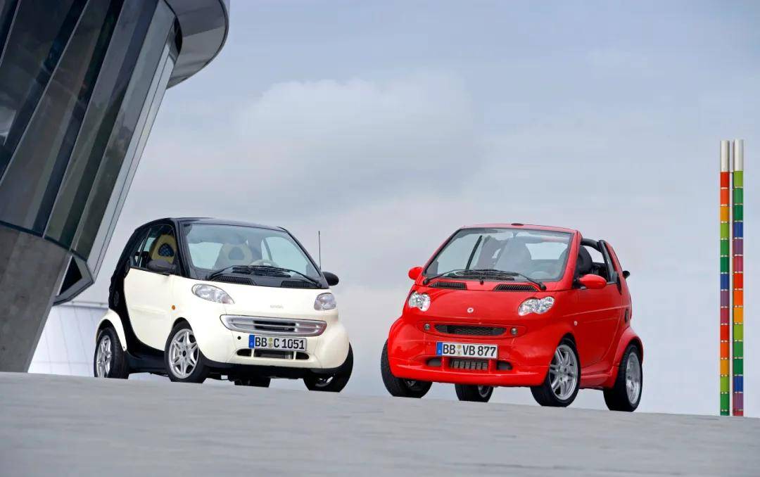 1998年,第一代Smart Fortwo正式量產(chǎn),車長短至2.5米,僅能容納兩名乘客,是為擁堵城市量身打造的出行工具。Smart一面世便以極致緊湊和顛覆性的設(shè)計(jì)吸引全球關(guān)注:雙色拼接、可更換的塑料車身面板、后置后驅(qū)結(jié)構(gòu),一臺小車,卻充滿科技與個性。