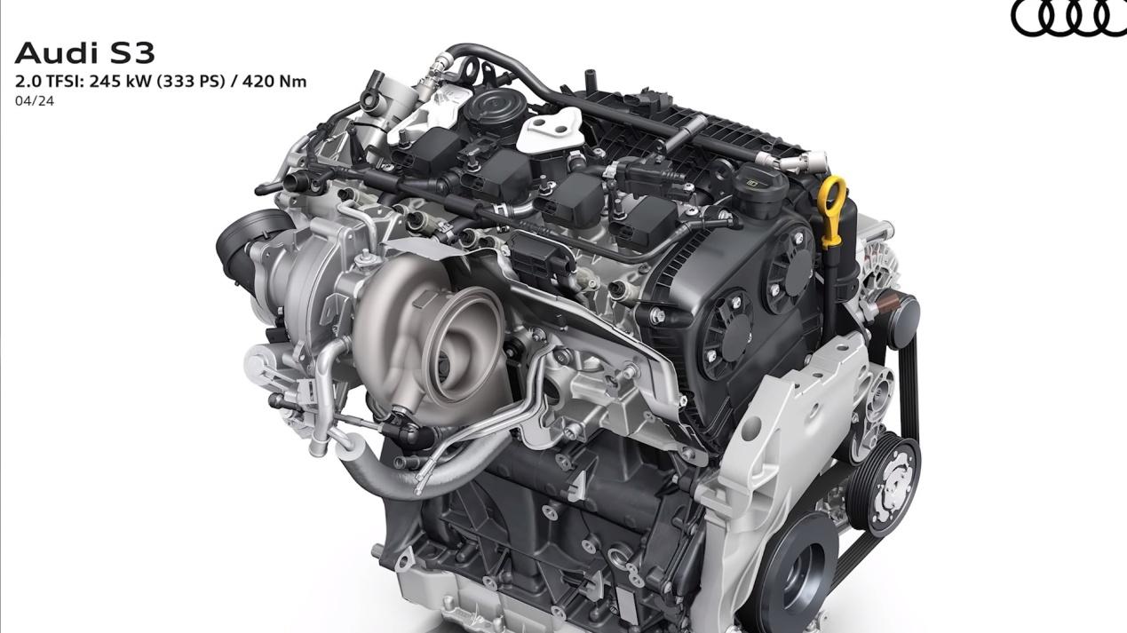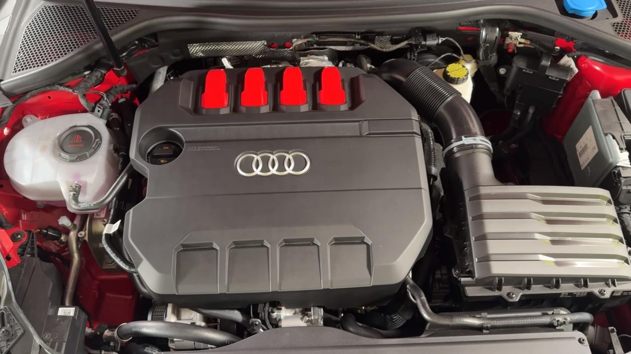 與此同時這輛車的發動機與變速箱相比老款也有所改進,加速成績也隨之更好。發動機蓋板上的4條紅色方塊兒非常醒目,好像在告訴你我很牛批,別惹我。動力系統還是那個2.0渦輪增壓的4缸發動機。馬力從老款的310匹提升到了328匹。328匹聽起來好像也并不是很大,但是不要忘了,S3是一臺很小的車。