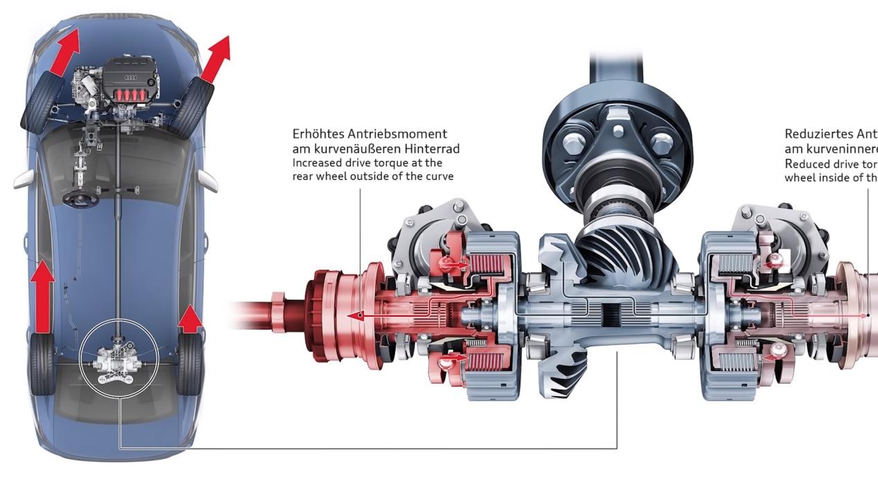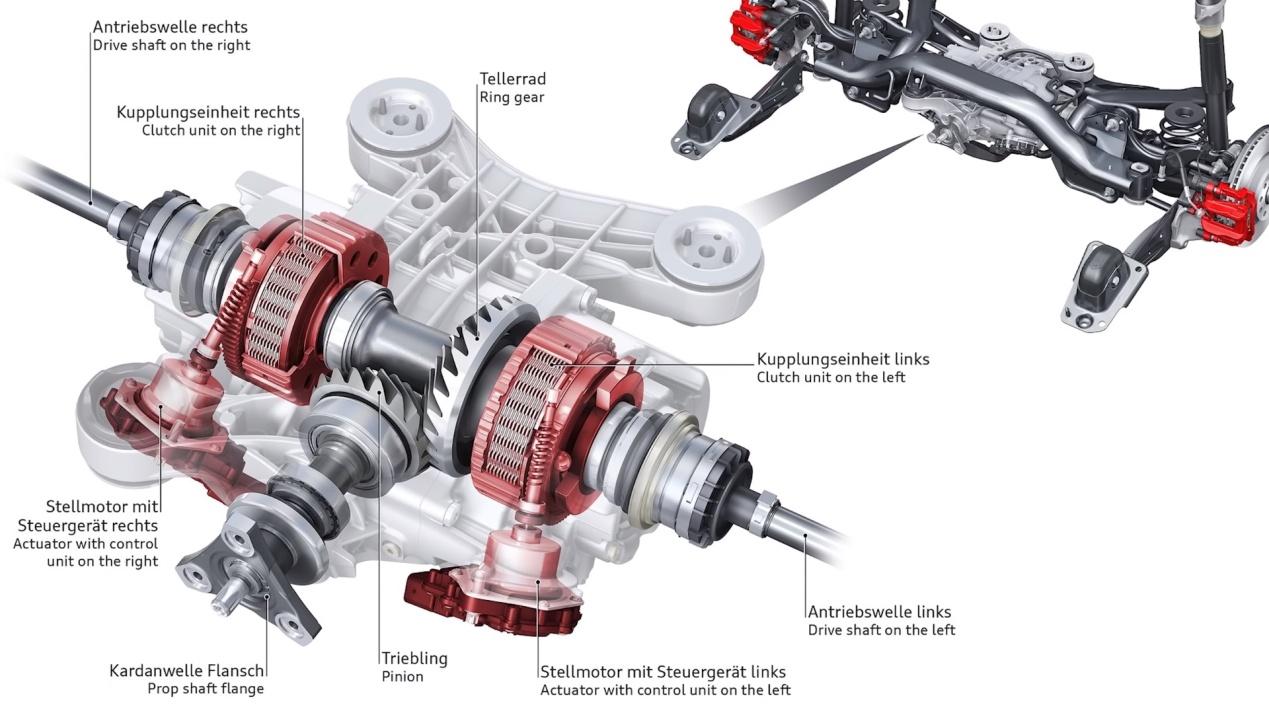 首先是它搭載了新的扭矩分配差速器,令人震驚的是,這套新的扭矩分配差速器是從它的大哥奧迪RS3上直接搬過來的,它可以讓發動機的動力單獨傳遞到新款S3的每一個后輪,也就是說發動機的動力可以100%的全部傳輸到左后輪或者右后輪,這就使得新款S3的轉向更加的靈活和敏捷,駕駛起來更偏向后驅車的感覺。