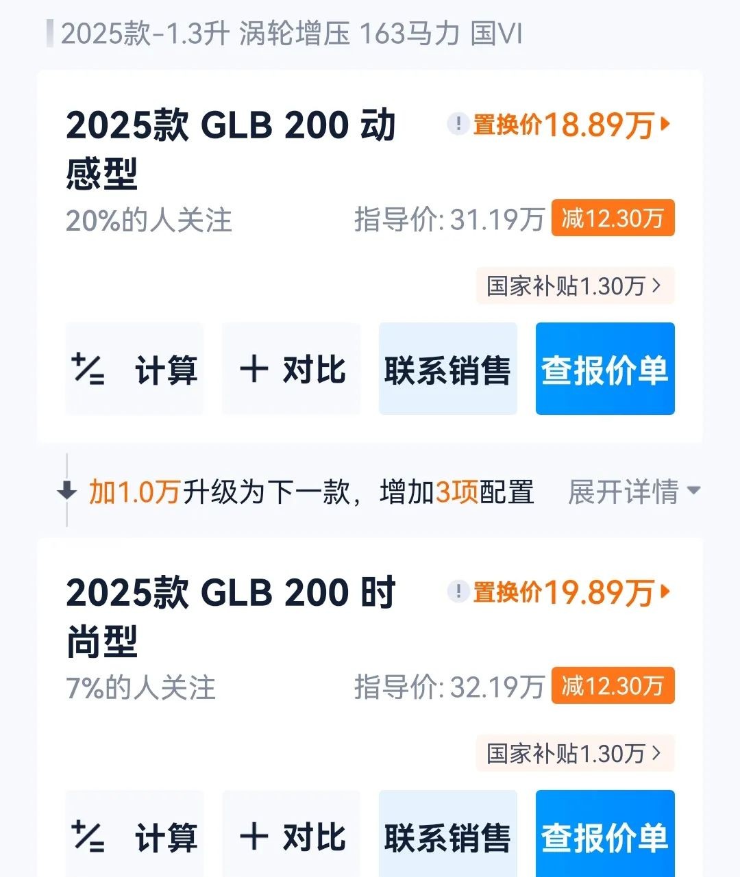 最近在朋友圈總看到有人發奔馳GLB的報價。原來要三十多萬的車,現在能砍到十八九萬,落地二十萬出頭。店里同事說終端價跌得厲害,連七座版都降到二十萬以內了。這車之前覺得離自己遠,現在價格下來后倒是有不少人開始考慮。