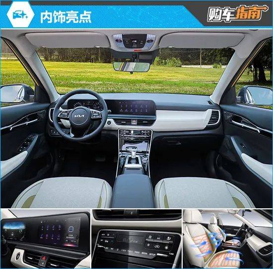 內飾方面,新車采用雙聯屏設計,整體造型更簡約、科技感更強。三輻式方向盤是起亞的家族化設計,方向盤兩側的多功能按鍵尺寸較大,采用撥桿與按鍵的組合,使用起來很順手。中控臺空調控制區域保留了實體按鍵,常用功能可以一鍵觸達。