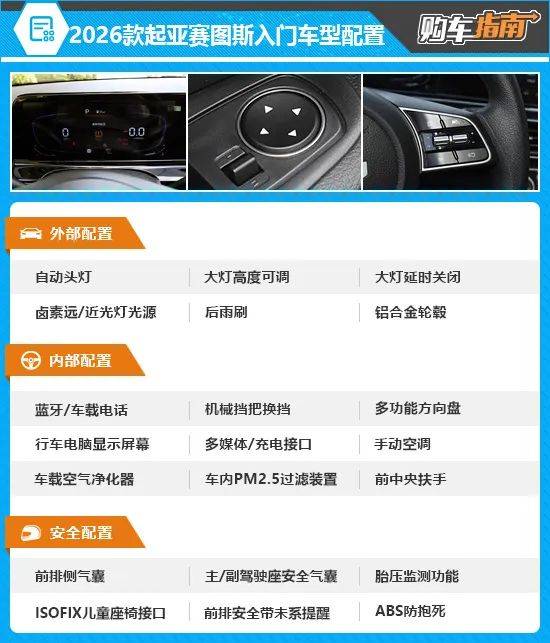 如今,雖然新能源汽車在國內汽車市場越來越受寵,但依然有不少消費者偏愛燃油車型。作為起亞品牌的熱銷車型,賽圖斯在2024年交出了全球銷量超31.2萬輛的優異成績。近期,悅達起亞也在中國市場推出了2026款起亞賽圖斯,通過對配置和可選車型數量的調整,進一步提升了競爭力。那么,對于這款起亞全球暢銷SUV,究竟哪款配置最值得入手?本期《購車指南》將為您解答。