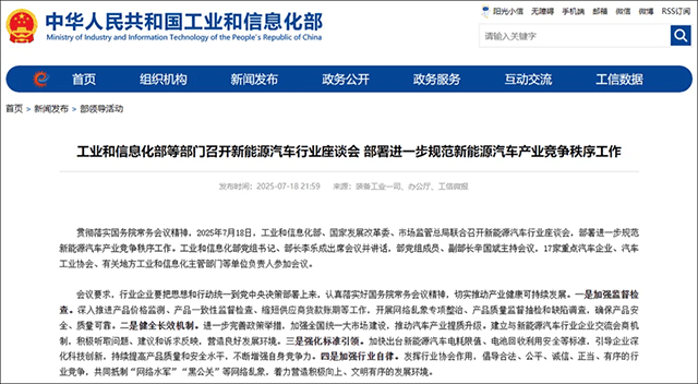 7月18日,工信部、國(guó)家發(fā)改委、市場(chǎng)監(jiān)管總局聯(lián)合召開(kāi)新能源汽車(chē)行業(yè)座談會(huì),核心議題是治理無(wú)序競(jìng)爭(zhēng),明確產(chǎn)業(yè)導(dǎo)向。這已是短短三天內(nèi)的第三項(xiàng)與新能源汽車(chē)行業(yè)規(guī)范相關(guān)的重大動(dòng)作。