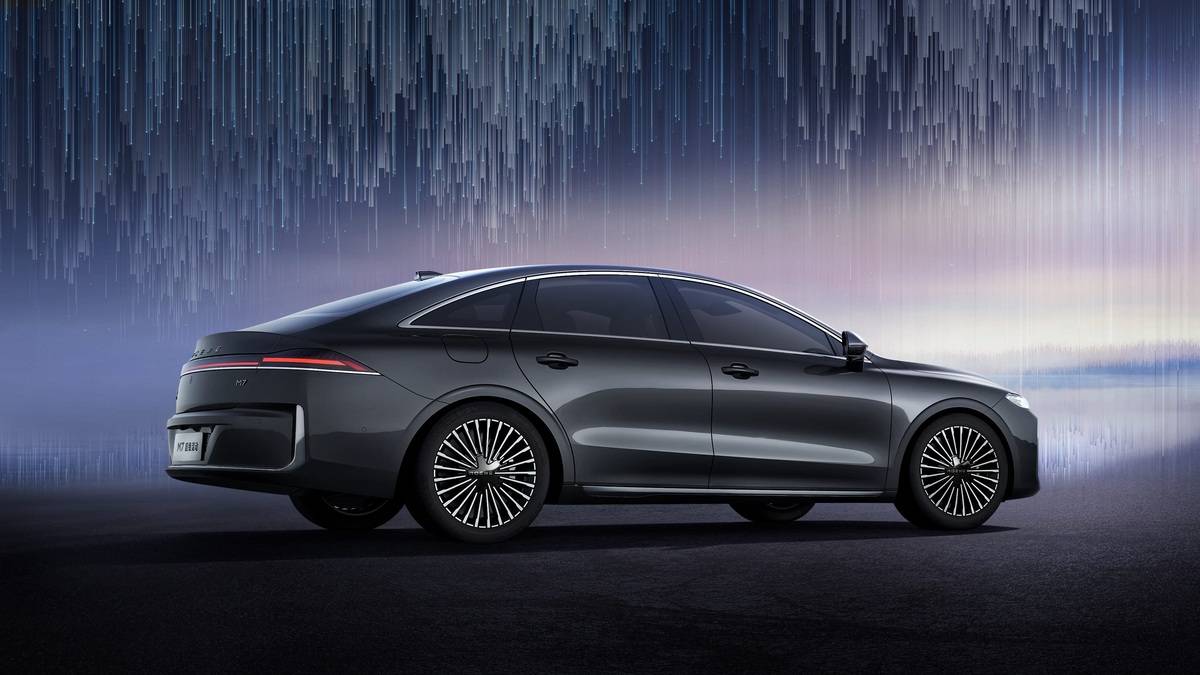 側(cè)面來看,新車側(cè)面造型較為修長,筆直的腰線配合車頂流暢的線條,使其看上去更加舒展。此外,新車還配備了大尺寸多輻式輪轂造型,并且新車還采用了羽翼式的照地?zé)簦廊A感拉滿。車尾部分,榮威M7 DMH采用3D懸浮貫穿尾燈,細(xì)長的燈帶極具辨識度,后保險(xiǎn)杠的鍍鉻包圍與前臉相呼應(yīng)。車身尺寸方面,新車長寬高分別為4940/1890/1510mm,軸距為2820mm。