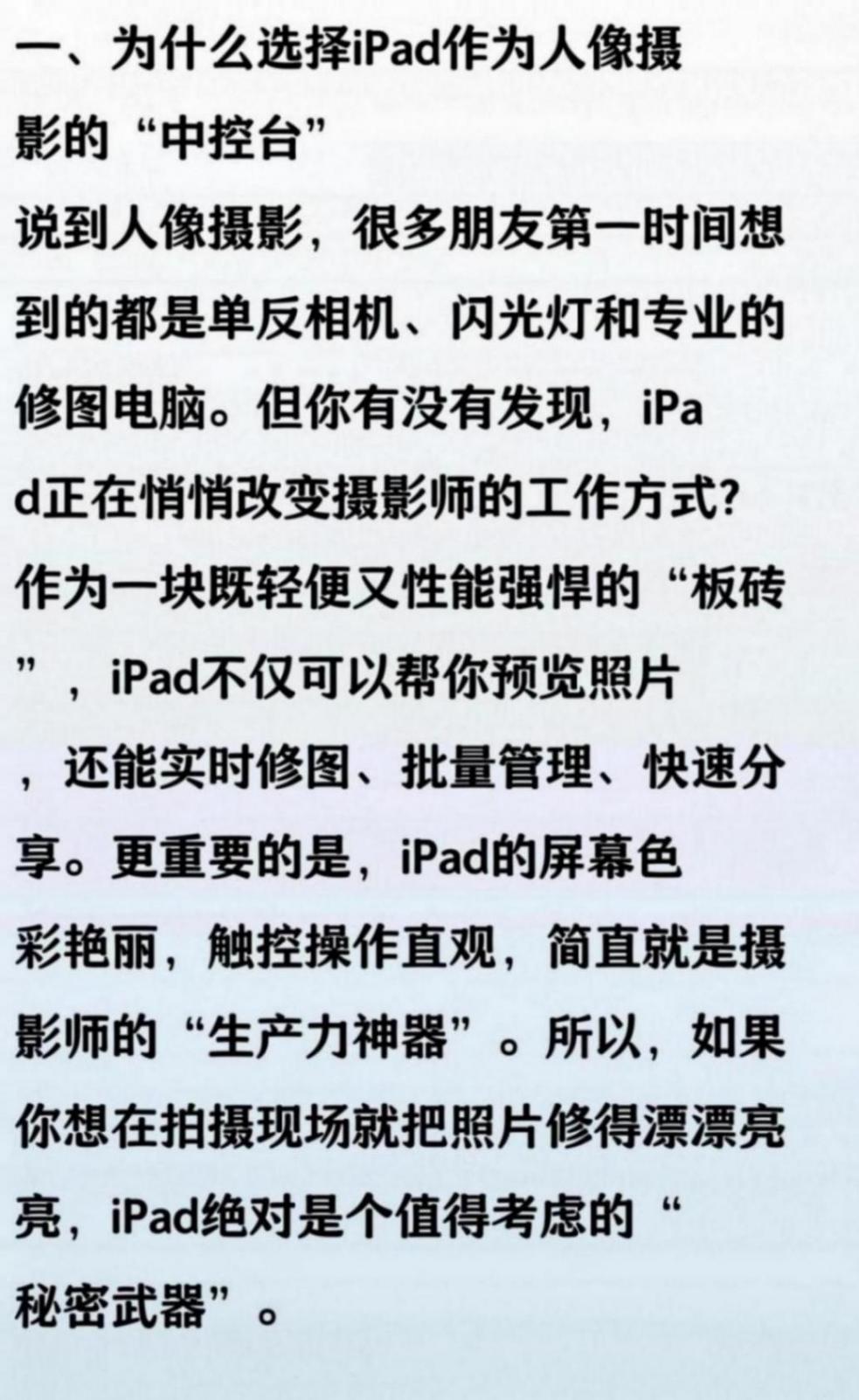 說(shuō)真的,現(xiàn)在用iPad拍照修圖已經(jīng)成了我的新日常。屏幕大、操作方便,修人像比手機(jī)順手多了。拍完直接Airdrop到iPad上,用Lr、PS一頓操作,分分鐘出片,細(xì)節(jié)還能放大慢慢摳。對(duì)我來(lái)說(shuō),iPad已經(jīng)成了我的隨身攝影棚,讓拍照和修圖都變得更有儀式感和樂(lè)趣了。