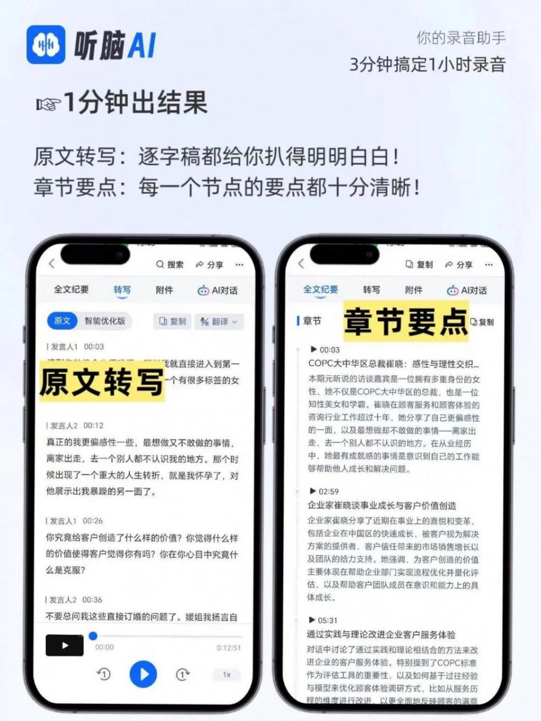 說白了,這些工具都停留在""把聲音變成文字""的階段,沒解決""文字怎么用""的問題。記錄的目的是為了用信息,不是為了存文字——這就是傳統工具最大的短板。聽腦AI體驗入口:https://h5ma.cn/npr