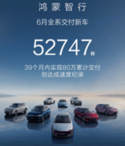 鴻蒙智行上半年累計(jì)銷量同樣超過20萬輛,在“四大家族”的共同支撐下維持高位運(yùn)行。其中6月單月全系交付52747輛,創(chuàng)歷史新高,并成為新勢力月度銷量冠軍。