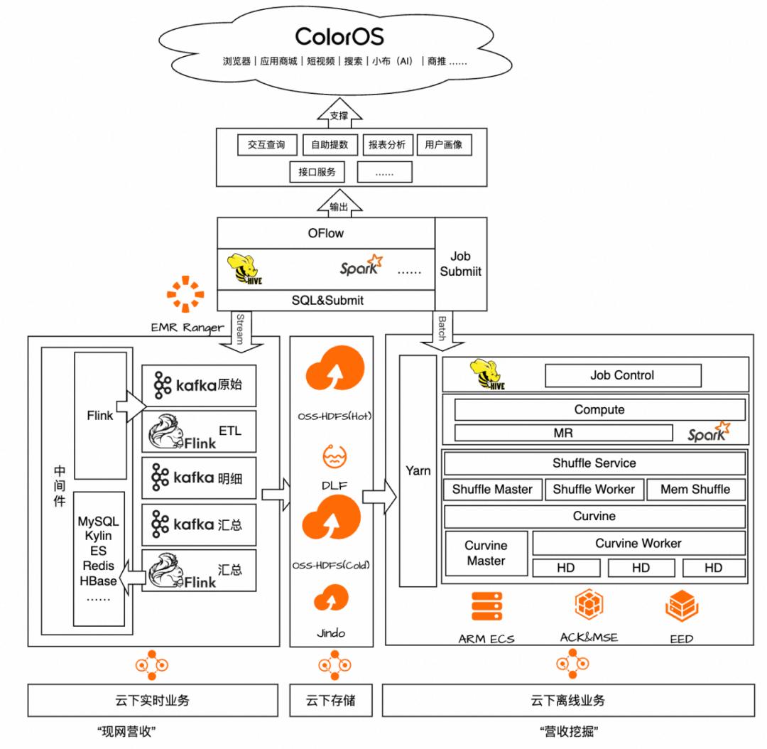 據(jù)介紹,OPPO 作為行業(yè)頭部企業(yè),其大數(shù)據(jù)平臺積累了數(shù)百 PB 的數(shù)據(jù)和數(shù)十萬個任務(wù),覆蓋 OPPO 軟硬件、互聯(lián)網(wǎng)服務(wù)等多種業(yè)務(wù)。隨著業(yè)務(wù)的不斷發(fā)展,OPPO 未來的數(shù)據(jù)體量、任務(wù)規(guī)模和技術(shù)演進路徑需要一種全新的基礎(chǔ)設(shè)施來支撐。相比 IDC,云提供的極致彈性資源調(diào)度、靈活的存算分離架構(gòu)以及多維度可觀測能力,更符合 OPPO 的長期規(guī)劃。