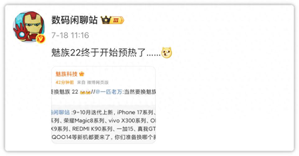 更要命的是,站哥還發(fā)帖說“魅族22終于開始預(yù)熱了”,把水?dāng)嚨酶鼫啠Φ么蠹乙詾?月真能見到新機(jī),期待值直接拉滿!