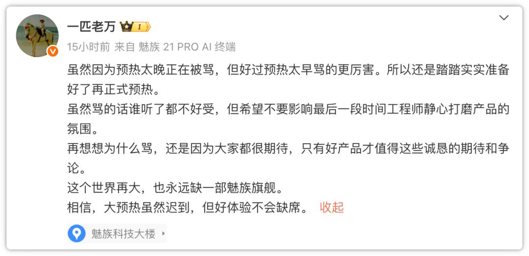 7月21日,魅族萬志強(qiáng)在社交平臺發(fā)帖稱: