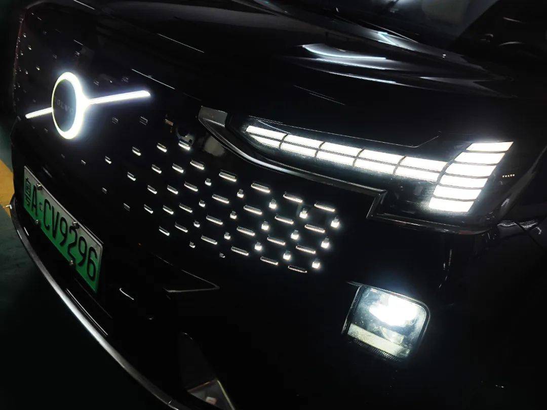 外觀設計方面,我必需承認EM90的側面確實非常近似極氪009,包括超過5.2米的車長、獨特的雙A柱、側滑門窗線后端的上翹小翼構型、平坦的前機艙蓋、筆直的車尾輪廓……元素,都與極氪009有異曲同工之妙。但如果看到車頭,就會發現EM90的大亮點──大燈依然有“雷神之錘”日行燈,但造型變得更細致、犀利,并且那“錘”不再只是單一燈條,而是改為許多LED燈組合成矩陣型式,車輛上下電時能秀燈語。