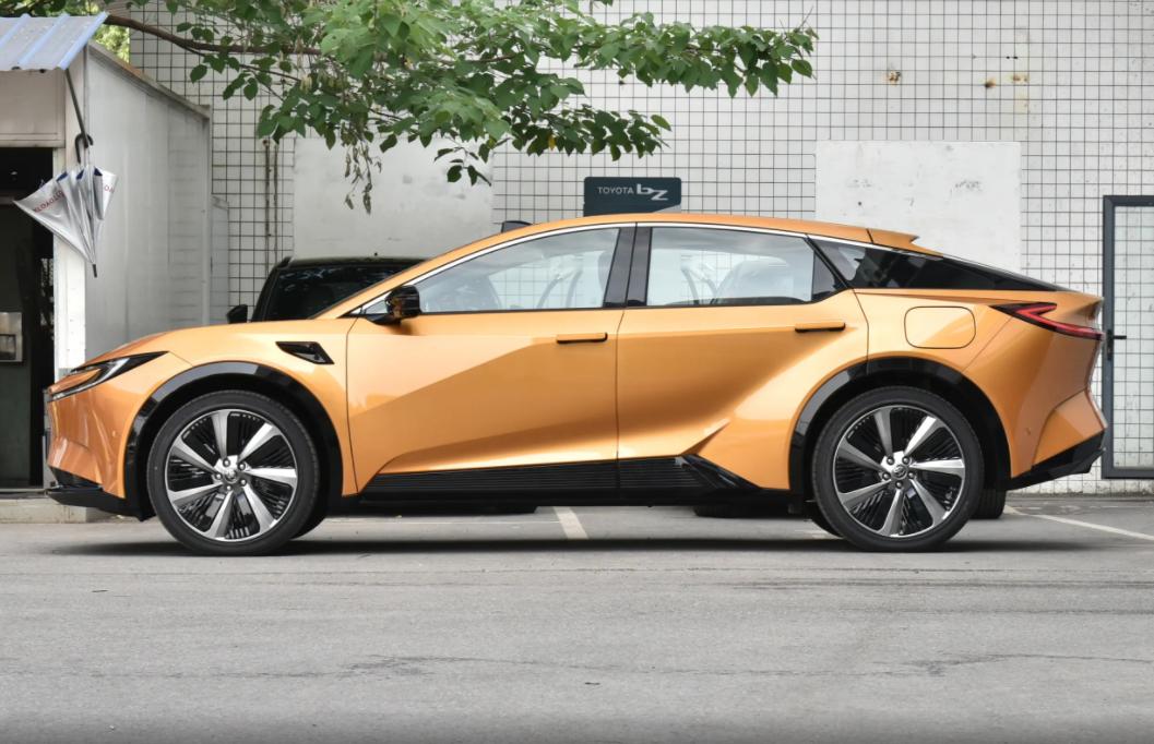 而從車身側面來看,雖然豐田bZ5定位SUV,但它的車身姿態表現的并不像是一臺傳統的SUV,所以這是一臺追求“好身材”的跨界SUV。而且側面的線條更加立體,搭配上除入門版都標配的21英寸大輪轂,同樣可以提升整車的視覺沖擊感和力量感。除此之外,豐田bZ5配備了伸縮式開啟的隱藏式門把手,也符合新車的產品定位,以及年輕消費者的審美需求。