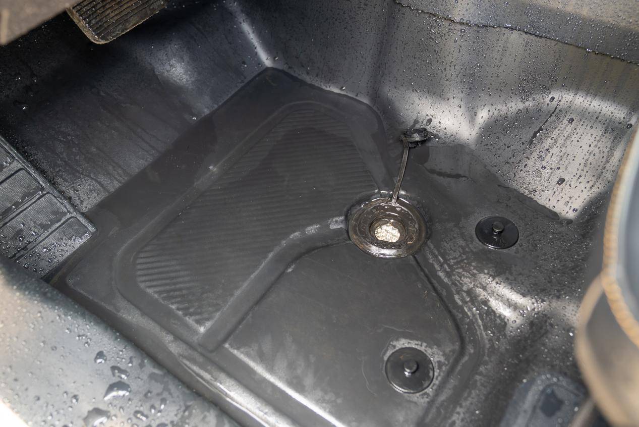 車內排水系統獨具巧思:PVC 地板帶導水槽設計,4 個主動排水孔與 7 個被動排水孔形成梯度引流,越野歸來直接沖洗即可恢復干爽,無需費力擦拭或擔心積水殘留。