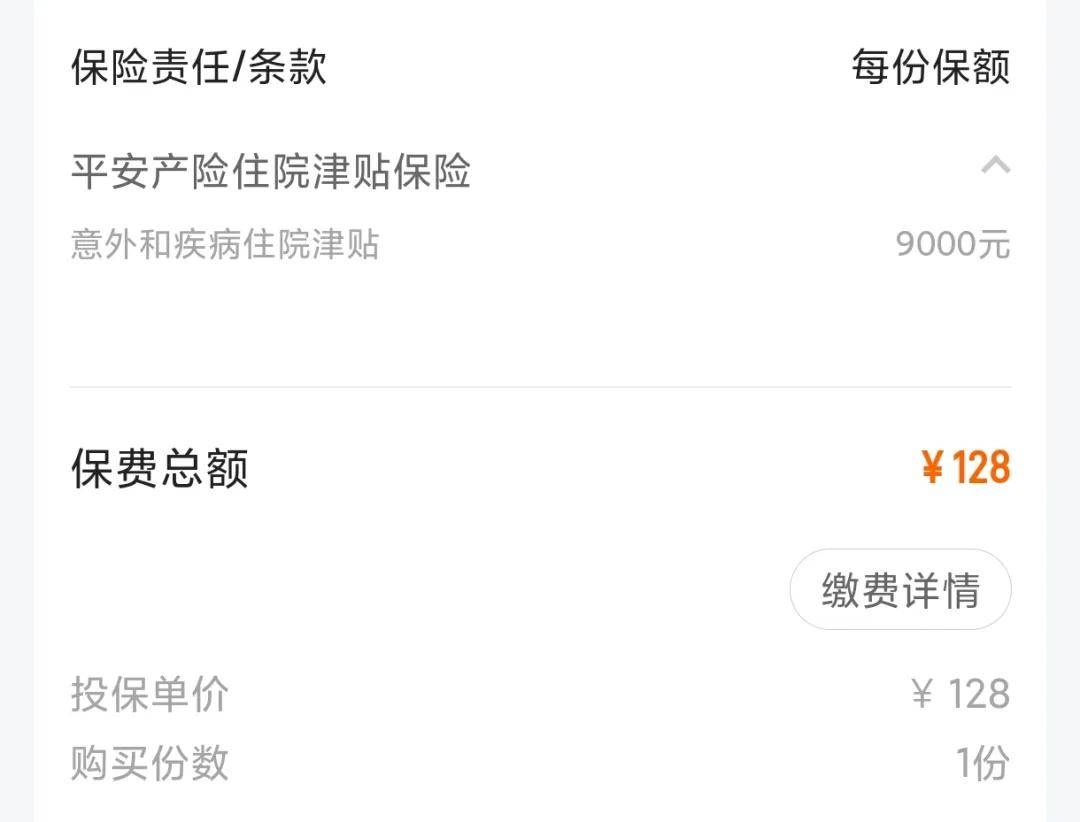 我這次“被捆綁”買的這個128元的車主尊享保障,其實是住院津貼保險,保額只有9000元。之所以會買這個看似很不劃算的保險,是因為買了它之后,我能得到更多的增值福利。