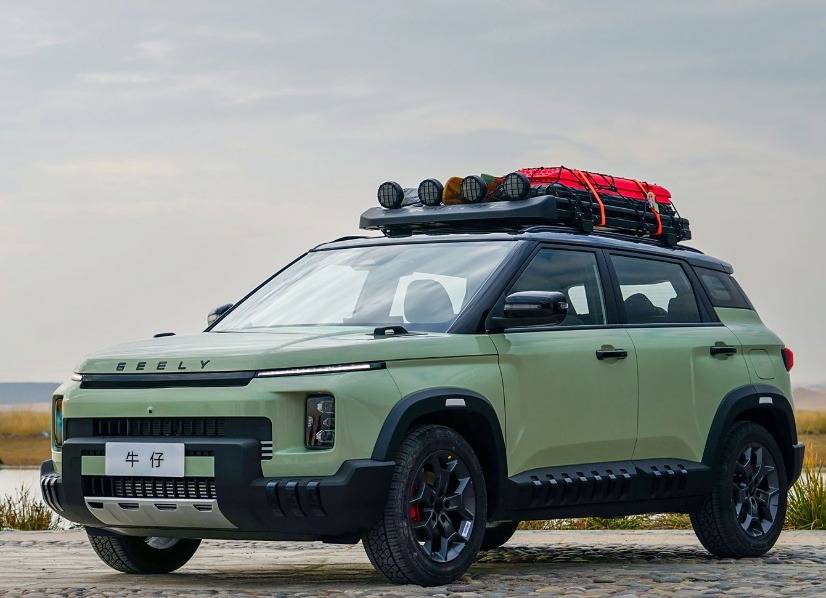 外觀方面,牛仔采用潮流越野“方盒子”設計,造型硬派不失時尚感,力量感十足的前格柵搭配粗獷立體的線條,下方銀色裝飾件,彰顯奔放氣質。輪廓方正有范,簡潔硬朗,充滿肌肉感,車身四周還采用了棱角分明的大包圍設計,增強了車側層次感和視覺張力。除此之外,還可選配越野AT胎及紅色卡鉗,配合縱情山野裝備架、多功能潮旅工具包、潮旅魔術背包三大越野裝備,硬派范兒十足。尺寸方面,吉利牛仔的長寬高分別為4442/1860/1770 mm,軸距2640mm,定位小型SUV。