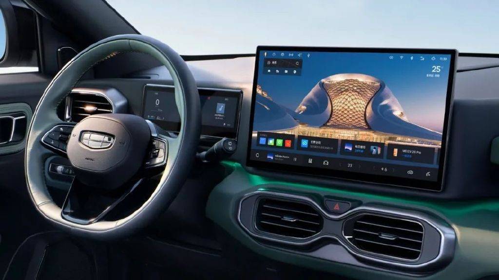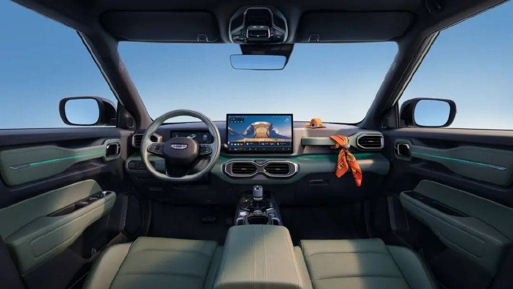 內飾方面,吉利牛仔采用了牛仔布皮質雙拼座椅,融合皮質、牛仔、仿麂皮等多種面料,前排座椅還壓印“BORN FREE”標識,盡顯自由潮流。256色呼環抱式吸氛圍燈支持20檔亮度調節、3種顯色模式,可與駕駛模式聯動,氛圍感直接拉滿。副駕駛前方副儀表板、前排兩側門板區域還設計專屬把手,路況不佳時給副駕駛提供橫向支撐。