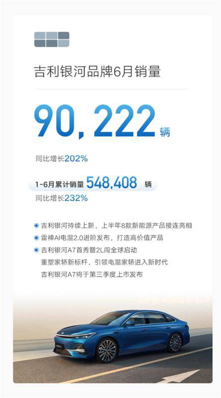 而具體到產品層面,6款新車中,吉利銀河將推出3 款新品,分別為“全球家轎新標桿” 銀河 A7、“AI 科技大六座旗艦 SUV” 銀河 M9,以及一款搭載千里浩瀚 H7 方案的旗艦產品。其中,搭載了 “雷神AI 電混 2.0”等領先技術的銀河A7、銀河M9,已經展現出來強大的競爭實力。