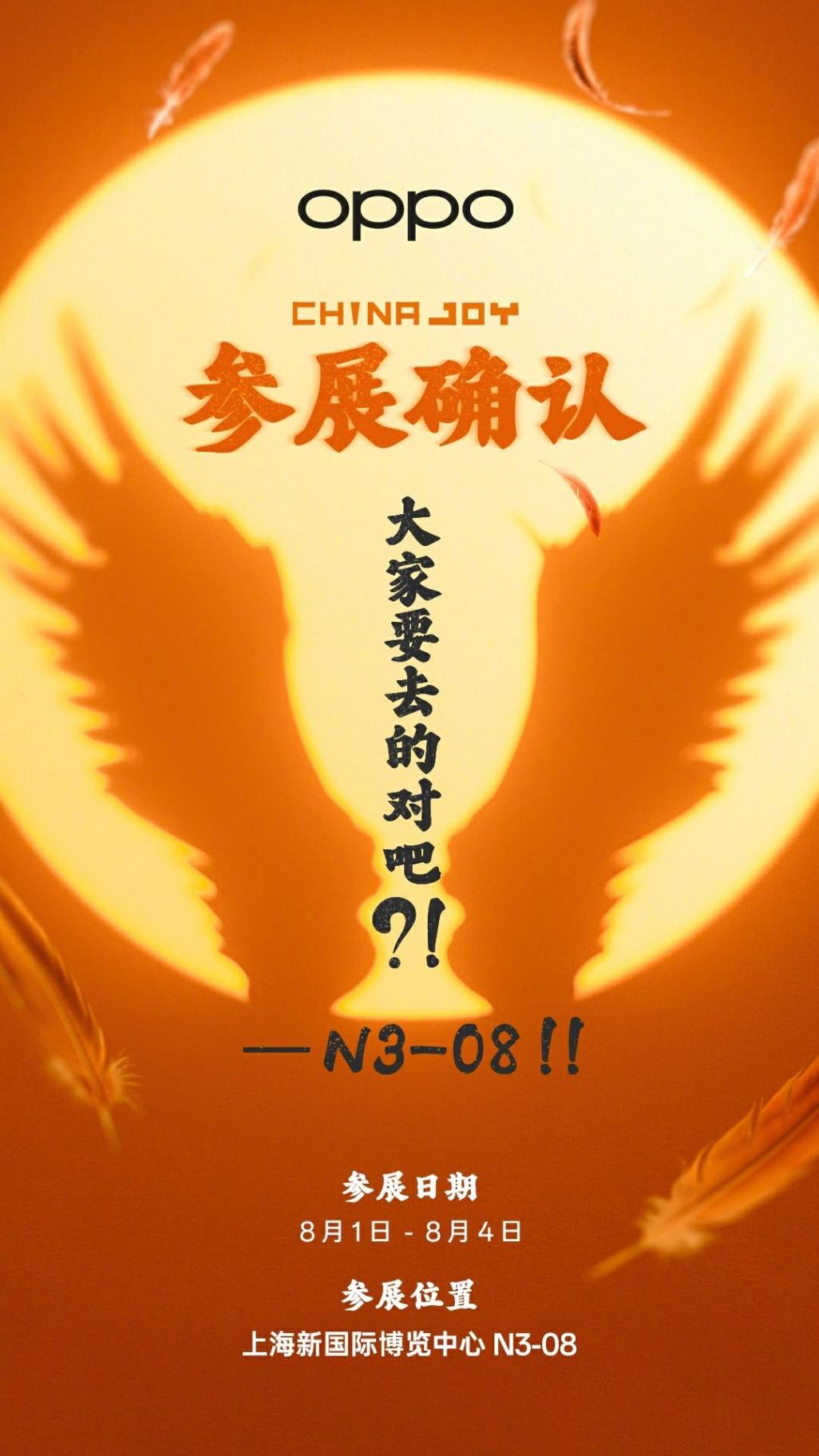同時,OPPO還宣布將于 8月1日-8月4日 參加上海ChinaJoy(展位號N3-08),相信會在現(xiàn)場展示聯(lián)動產品。