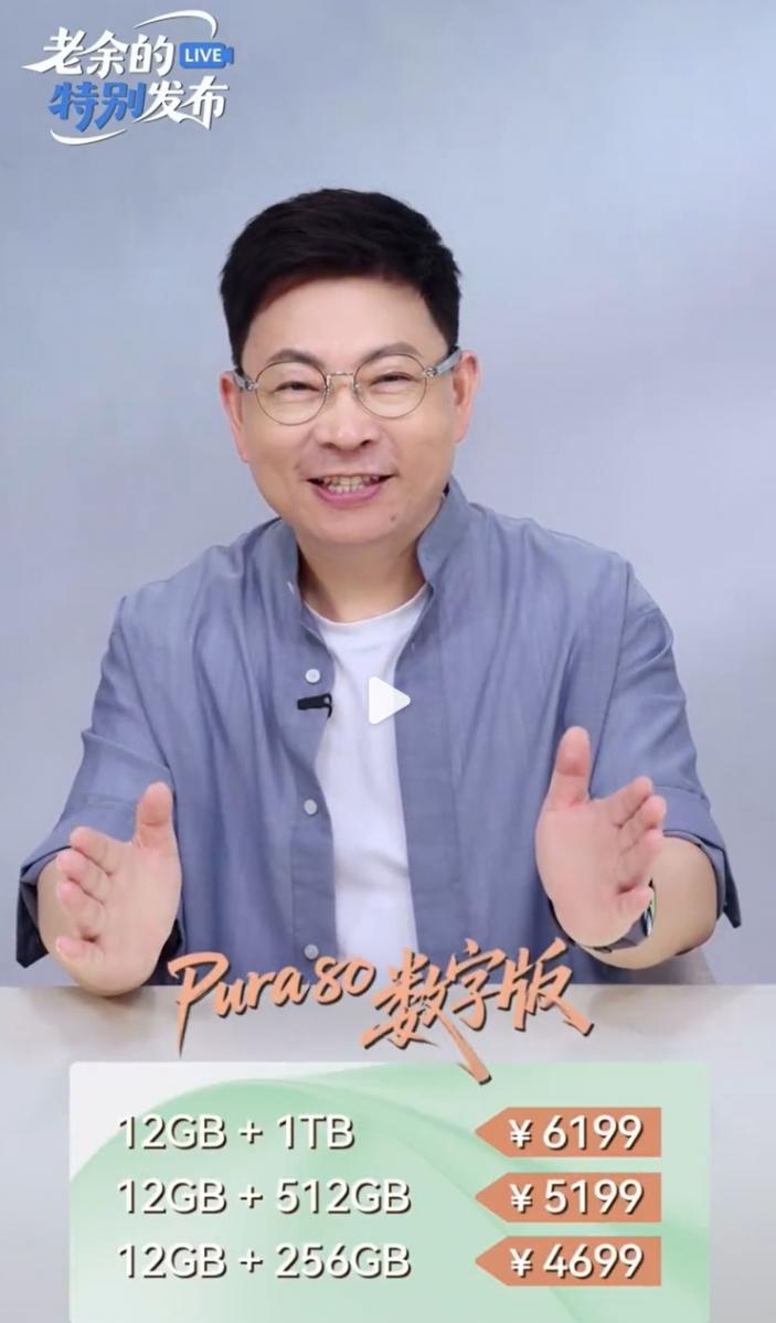 在華為終端發布的視頻中,余承東對華為Pura 80數字版進行了介紹。