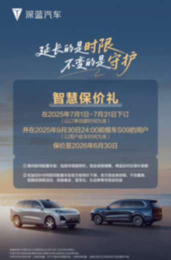 關于購車成本,購買深藍S09即日起至7月31日鎖單的用戶(在2025年9月30日24:00前提車,可保價至2026年6月30日),可享受以下權益(總價值高104599元),這其中包含:免費充電樁:含30米內安裝服務(一年內有效);置換補貼:長安系車主補貼1萬元,其他品牌補貼5000元;金融政策:15萬元3年0息貸,節省利息約1.8萬元;智能駕駛補貼:至高2萬元;選裝/質保/流量:分別價值2萬元、2.1萬元和1600元。