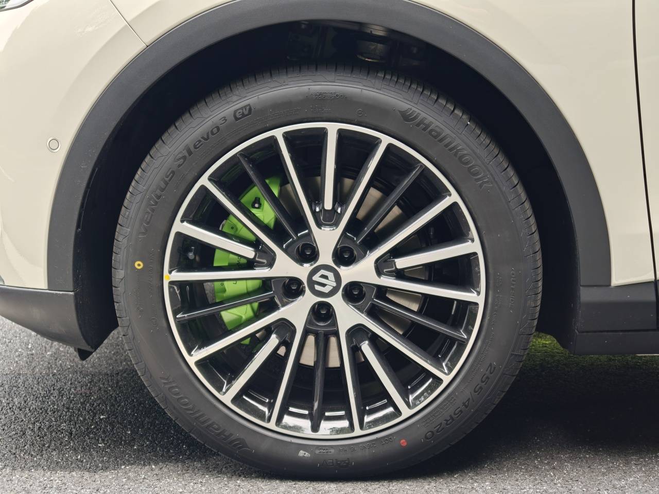 3、 新增霧凇米外觀色,外形上保留了經(jīng)典的無框車門、隱藏式電動門把手、溜背曲線、凌風飾條,后窗也有隱私玻璃,讓人明顯覺得質(zhì)感更好了。20英寸輪轂為全新設計,還升級了前四活塞卡鉗,做了淺綠色的性能涂裝。