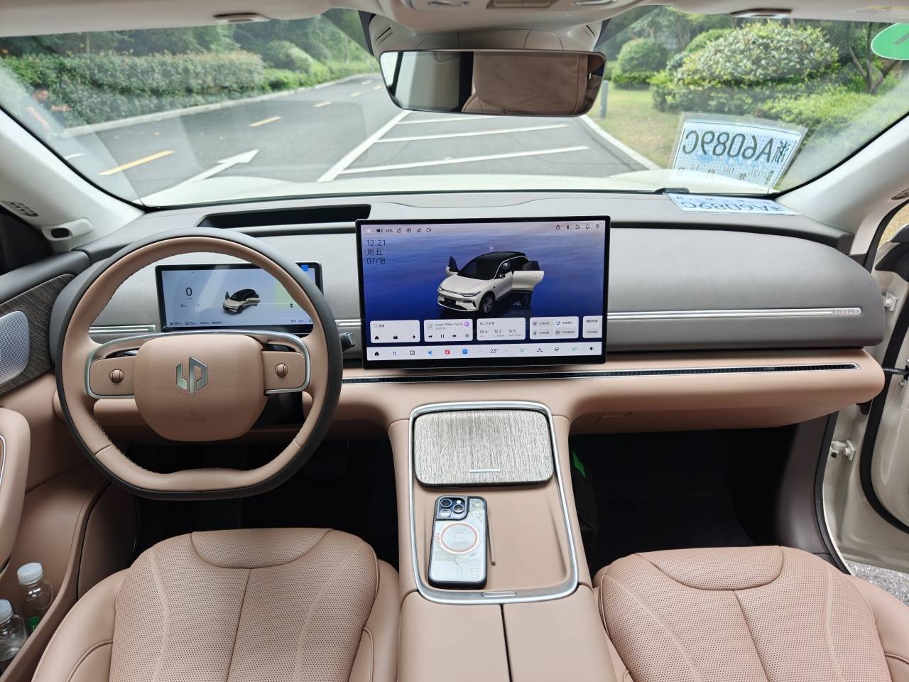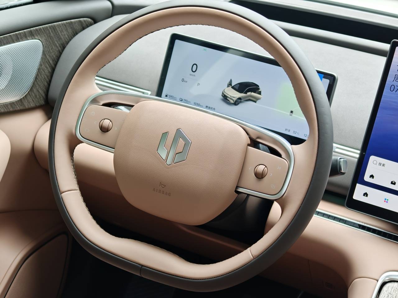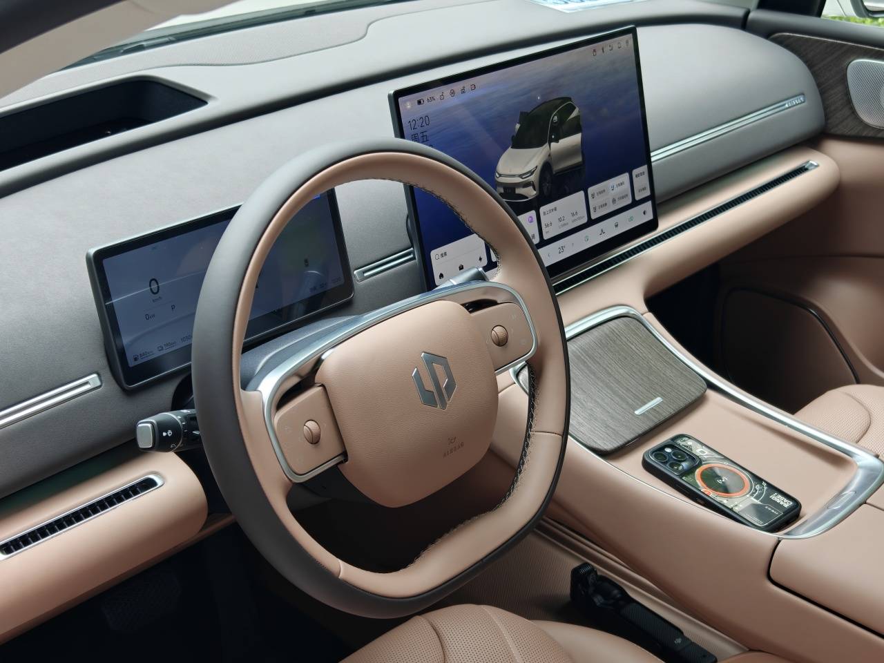 4、內(nèi)飾變化更大一些,前IP臺取消了曾經(jīng)的三塊屏幕,改為了10.25英寸液晶儀表+17.3英寸大屏的組合,還有一個自研的60英寸HUD,車內(nèi)視覺效果主打一個“大”。此外采用了貫穿式電子式出風口設計,整體感更強。