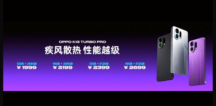 設(shè)計彰顯競速美學(xué):Pro版提供騎士銀、初號紫、黑武士三色(標(biāo)準(zhǔn)版為騎士白/同色紫/黑),Pro背部更搭載疾風(fēng)渦輪呼吸燈(8色可調(diào)),活力十足。高強(qiáng)度晶盾玻璃堅固耐用。價格誠意拉滿:K13 Turbo Pro (12+256GB) 僅1999元起(16+256GB 2199元,12+512GB 2399元,16+512GB 2699元);K13 Turbo (12+256GB) 1799元起(16+256GB 1999元,12+512GB 2299元)。全系7月25日10:00開售!