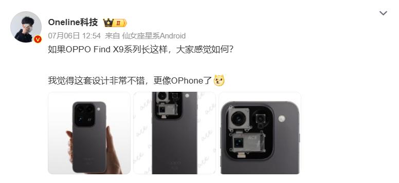 值得一提的是,這次Find X9 系列或將放棄沿用了數代的圓形相機模組。根據網上曝光的渲染圖顯示,新設計采用了矩陣式相機模組,位置也移動到了機身的左側。按照慣例,各大手機廠商都會在相機模組上加入自家影像品牌標志,預估Find X9 系列也不例外。