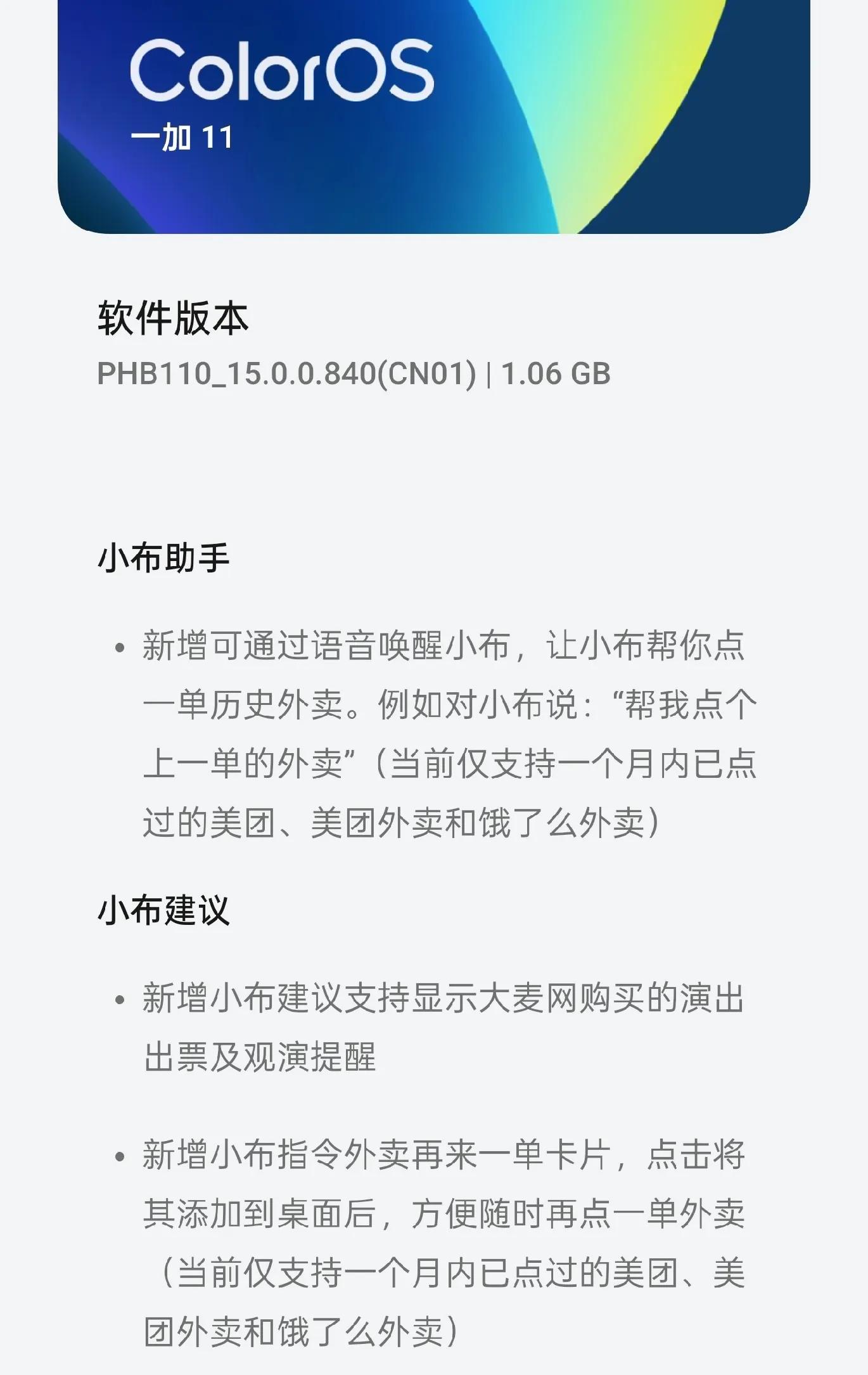 更新內(nèi)容有的已經(jīng)和ace5pro看齊了,可以讓小布幫忙點(diǎn)外賣,而且小布建議支持演唱會(huì)門票出票及觀演提醒。小布識(shí)屏繼續(xù)優(yōu)化,功能更實(shí)用。當(dāng)然補(bǔ)丁包也更新了,安全必不可少。看樣子一加11再戰(zhàn)兩年不是夢(mèng),大家覺(jué)得呢…