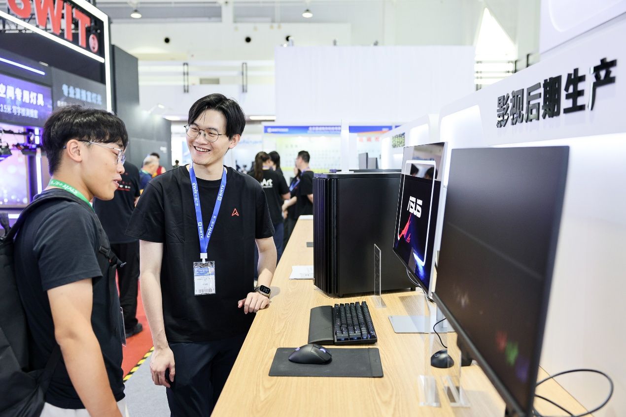 BIRTV2025現場熱鬧非凡,華碩ProArt展臺前聚集了許多客戶與參觀者,眾多內容創作者駐足體驗華碩ProArt創夢Pro OLED這款專業顯示器。