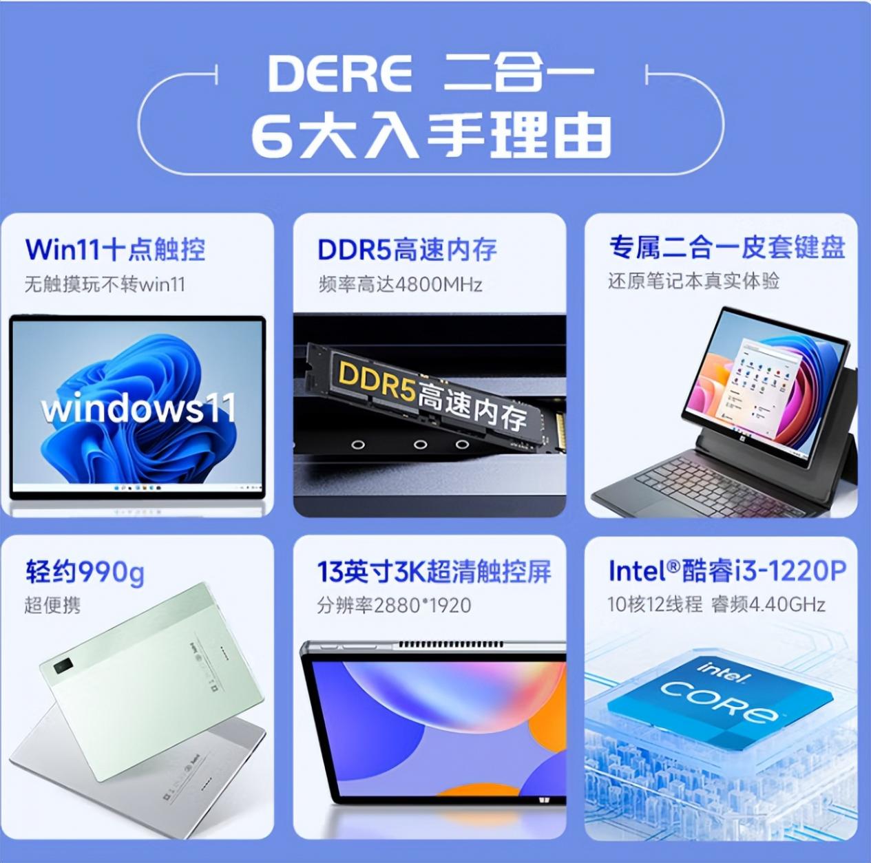 要想輕松出行,首先機子不能重。戴睿T30,13英寸,厚度不足14mm,整機約重990g,加上配套鍵盤才1.7kg,打工人外出辦公毫無壓力,絕對是出差的絕佳之選。