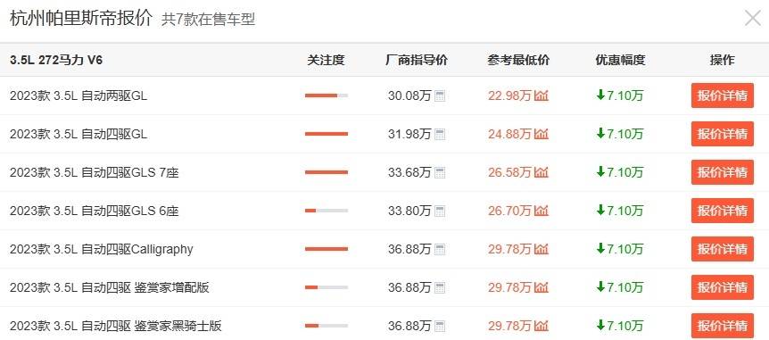 其實(shí)國人對(duì)現(xiàn)代旗下的帕里斯帝這車好感度挺高的,為啥這么說呢?因?yàn)檫@臺(tái)車不僅給到了3.5L V6的發(fā)動(dòng)機(jī)和8AT變速箱,還是一臺(tái)車長(zhǎng)將近5米、軸距達(dá)到2900mm的七座中大型SUV。再加上目前新車終端能優(yōu)惠4~7萬,等于說裸車最低只需要23萬就能買,這就又提升這車的性價(jià)比與好感度。
