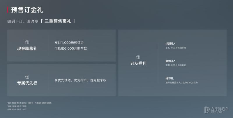 與此同時,支付1000元訂金可抵6000元購車款的訂金膨脹禮、品牌老用戶可享至高1.2萬元支持的老友福利禮,以及下訂客戶優先試駕、排產與交付的專屬優先禮,三重權益為用戶帶來實實在在購車優惠與便捷體驗。