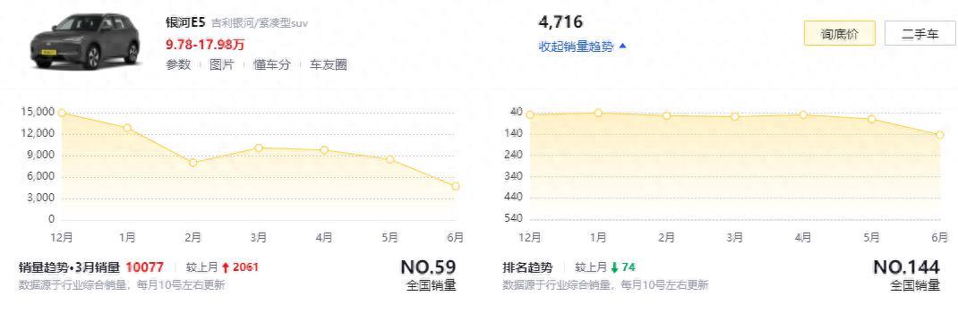 從銷量上看,吉利銀河E5曾經也是一臺月銷過萬的熱門車型,只不過臨近改款,6月份的銷量出現了明顯下滑。而隨著時間的推移,2026款吉利銀河E5終于上市,相比老款新車的起步價漲了2000元,但是從配置上來看,2026款銀河E5的低配車型就具備530公里的長續航。所以,下面我們就對新款吉利銀河E5進行一個簡單的分析,看看它的表現怎么樣。