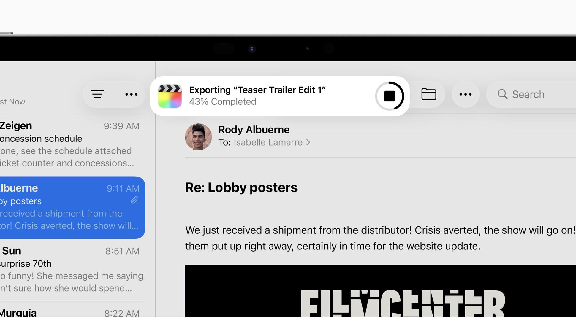 - 如 Final Cut Pro 導(dǎo)出視頻時(shí),可開新窗口干別的,通過實(shí)時(shí)活動(dòng)界面查看進(jìn)度