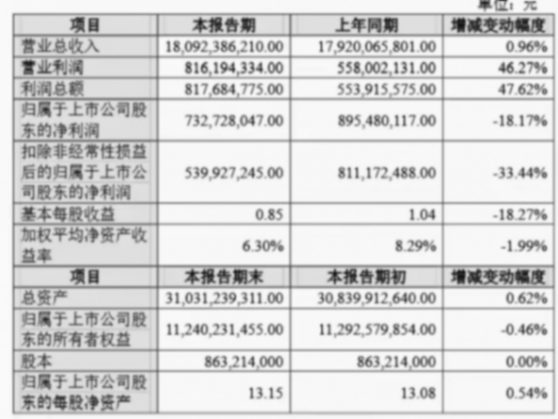 更值得關注的是,扣除非經常性損益后的凈利潤下降幅度更為顯著,同比下降33.44%,僅為5.40億元。