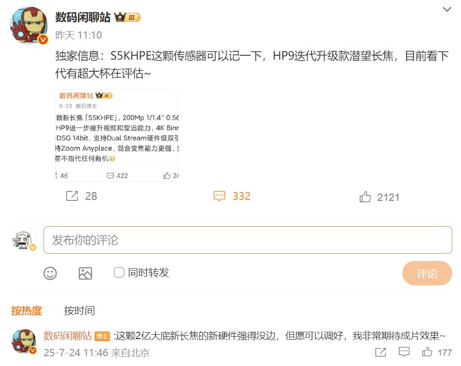 原因是近期的市場中傳出了許多關(guān)于新機的消息,不僅搭載三星新一代2億像素潛望長焦傳感器S5KHPE,同時首次采用國產(chǎn)1英寸大底主攝。