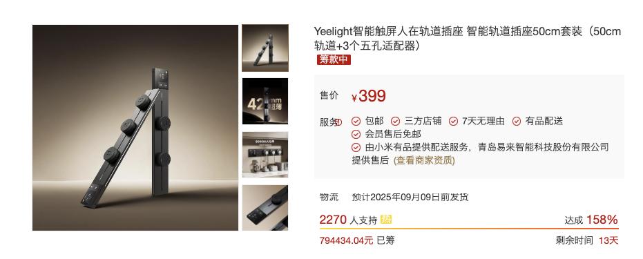 最近他們眾籌了一款新品,真是讓我眼前一亮,它就是——Yeelight智能觸屏人在軌道插座,眾籌價399元,比首發699元實惠不少,誠意拉滿。