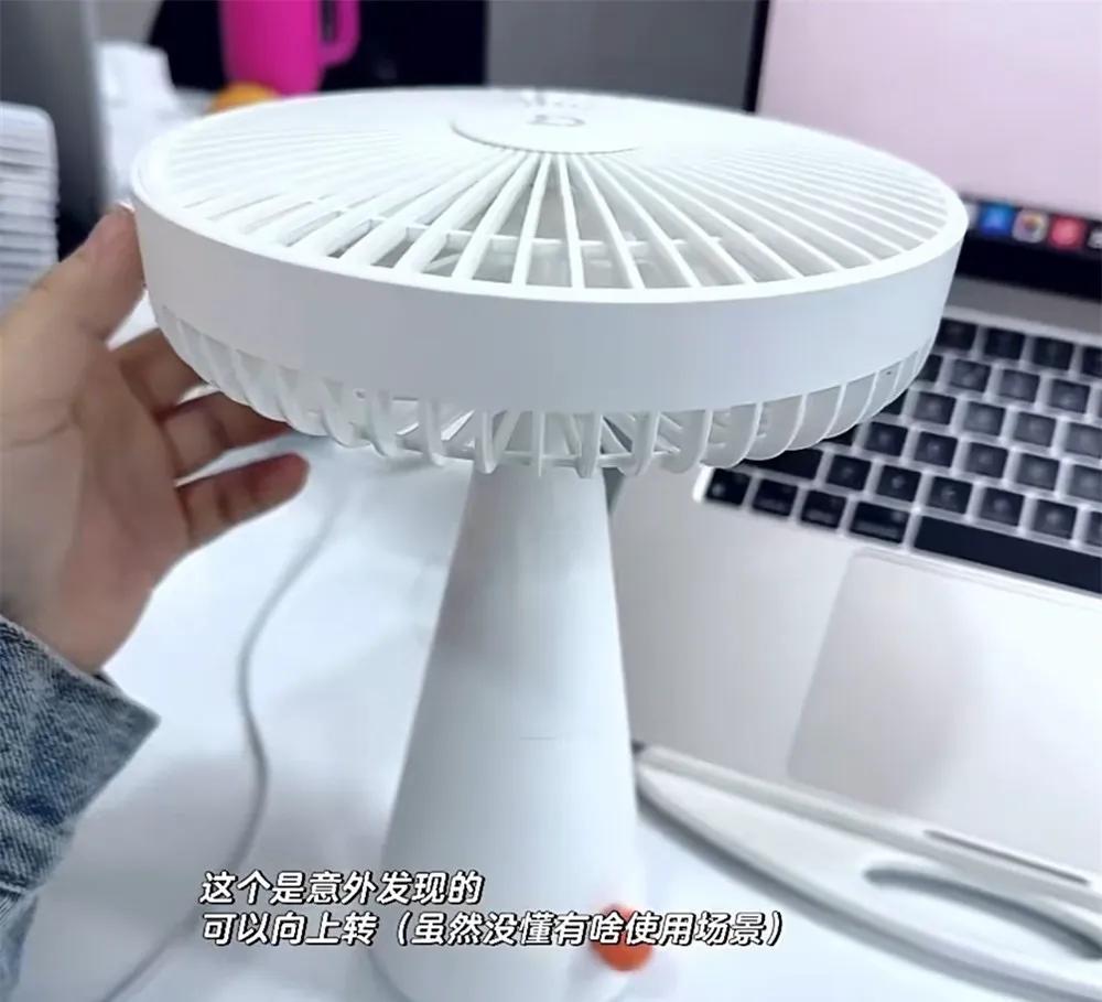 再就是那個可充電的臺扇,夏天吹空調怕感冒,就放一個在桌上。四個檔位夠用了,第二檔聲音小,轉頭范圍廣,整個桌子都能吹到。電池能撐一整天,停電也不怕。我家客廳的落地扇都很少開了,這玩意小巧好搬,辦公室也帶了一個。
